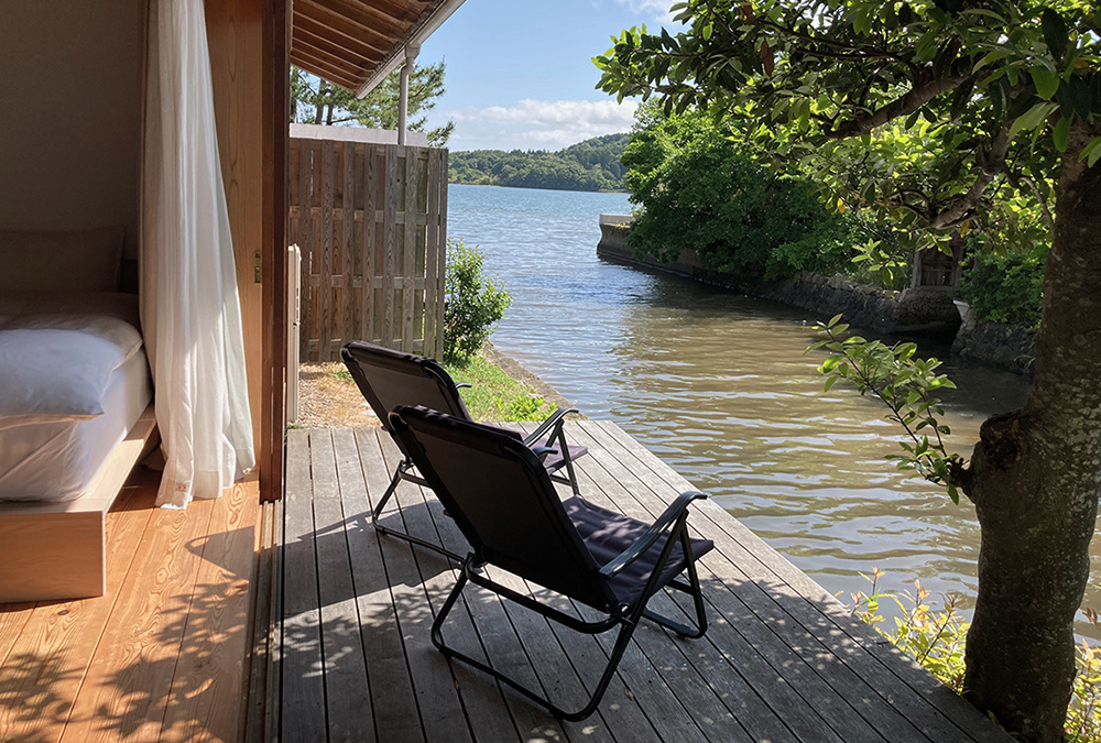 門前に久美浜湾を望む絶好のロケーション。4 月には寺を囲む山の斜面いっぱいに 自生のミツバツツジが咲き乱れ圧巻。桜、ヤマボウシ、紫陽花、萩、などの四季を 代表する花木だけでなく、住職が愛情たっぷりに育てた山野草も季節を彩り、一年中花を楽しめます。
